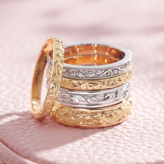 Absolutely! At Wedding Band & Co., we specialize in custom wedding rings and unique designs handcrafted in Chicago. You can schedule an appointment with our expert jewelers to discuss your dream rings, choose your favorite metals, and personalize every detail—from diamond shape to engraving.